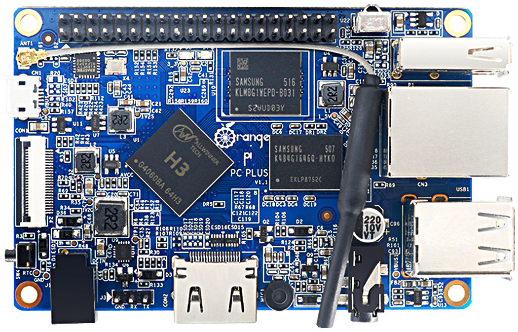 Микрокомпьютер Orange Pi PC Plus на микропроцессоре Allwinner H3 Quad-core Cortex-A7 32bit распространённое, на сегодняшний день, изделие.