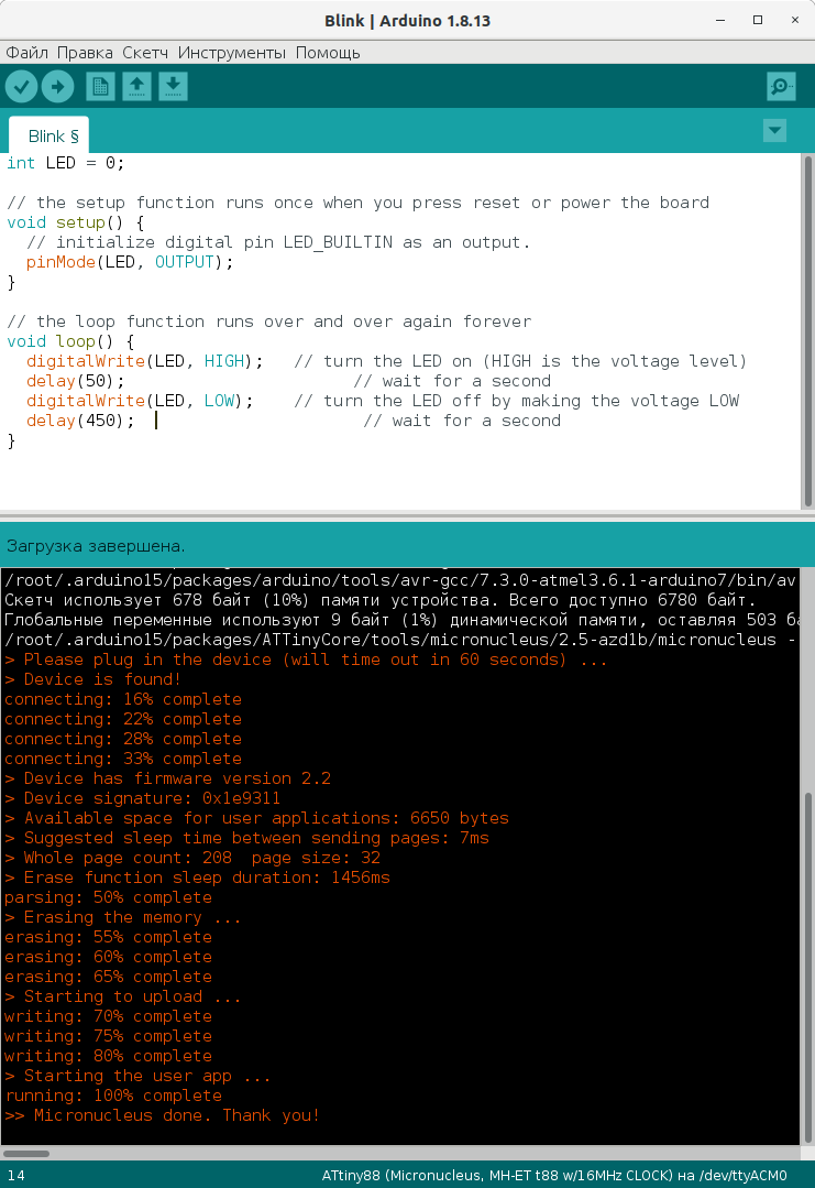 Подключаем платы HW-Tiny, MH-Tiny с микроконтроллером ATMEL ATtiny88 (t88) в среду программирования Arduino.