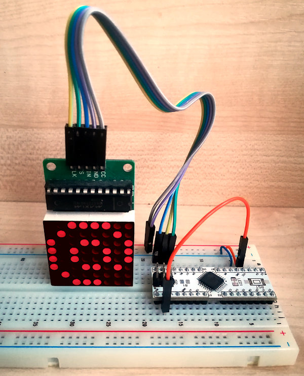 Мы предприняли попытку разобраться как устроены Arduino библиотеки для светодиодных индикаторов размером 8х8 с драйвером светодиодов MAX7219, и написали программу, следуя datasheet MAX7219, с использованием только функции shiftOut() из стандартной Arduino библиотеки.